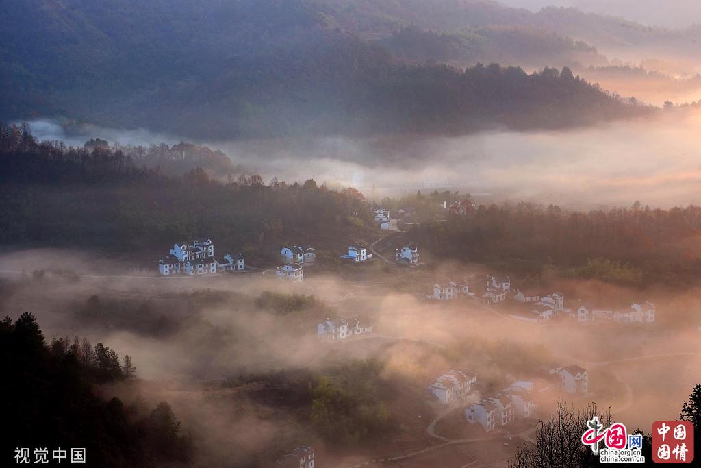 2019年11月29日早晨,安徽黄山市休宁县岩脚村现平流雾景观。