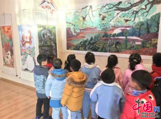 在为期4天的画展中,同学们欣赏到了童心画派创始人图雅高娃的作品,从她的作品中品味到了和谐、快乐、幸福……同学们都期待与她见面。