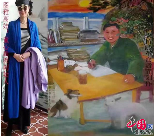 此次画展作品均为画家图雅高娃的作品。图雅高娃出生于神秘广袤的内蒙古大草原,深受大自然的熏陶,从小喜欢画画,她用人性化的眼光观察动物与景观,夸张、拟人手法,丰富的想象力,形成了自成一家的风格,创立了童心画派。