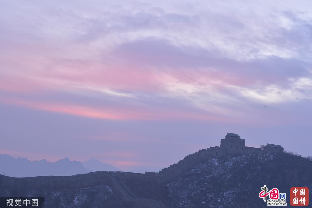 2019年12月9日,日出时分,河北省承德市滦平县金山岭长城,朝霞、晨雾弥漫氤氲升腾,美景如画。