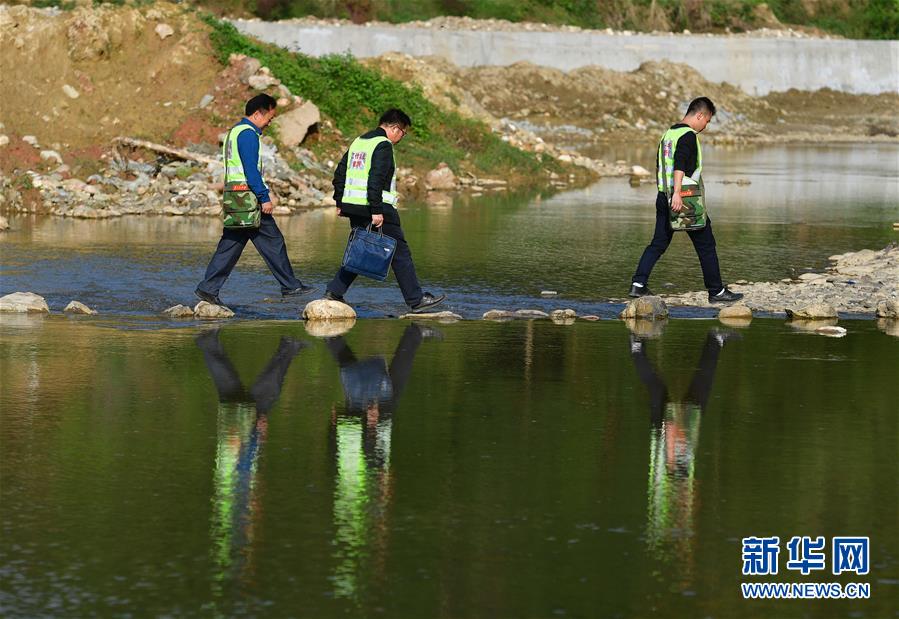 在广西融水苗族自治县良寨乡良寨村,来自县纪委监委的驻村第一书记(右一)带领扶贫工作队员走访群众(11月5日摄)。广西融水县是广西深度贫困县和国家扶贫开发工作重点县,全县“九山半水半分田”,是广西脱贫攻坚工作中一块难啃的“硬骨头”。目前,融水苗族自治县的脱贫攻坚工作已经进入冲刺阶段。 新华社记者 黄孝邦 摄