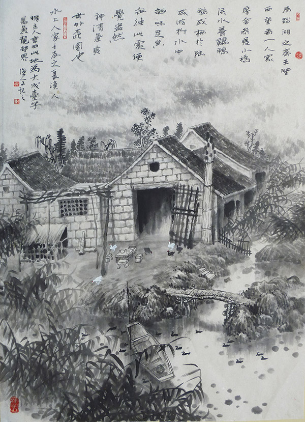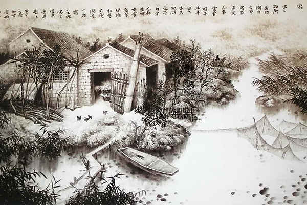 一湖秋水寂寂,万亩蒹葭苍苍。巩绪伟出生在桓台县马踏湖畔的一个北国水乡小镇——起凤。小镇人文积淀深厚,风情独具韵致。这里村村泊沼相连,户户枕水而居,恰似南国的鱼米之乡;这里的人们重学崇儒,敬畏自然,深烙着中国传统文化的印记。一方水土滋养一方人,亦滋养一方文化。这些文化,渗透到生产生活的各个方面,构筑起这方水土上的人们弥足珍贵的精神家园。巩绪伟在这些文化的熏陶中成长,对此有着深切的感悟,守望和保护这些文化,成为他坚定的内心选择和行动自觉。乡愁,成为他画面上最温暖的底色。他将乡愁融入丹青翰墨,挥洒于画纸之上,成为时代变迁的记录者。