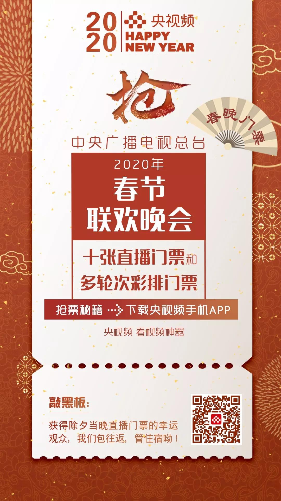 为了增加观众参与感和互动性,中央广播电视总台今年将首次向观众赠送2020年春节联欢晚会直播门票和多轮次彩排门票。
