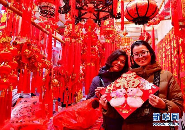 1月13日,福州市民展示刚选购的“福”字挂件。 春节临近,不少市民来到福州市鼓西路“春联一条街”选购春联、“福”字等节日饰品。 新华社记者 魏培全 摄