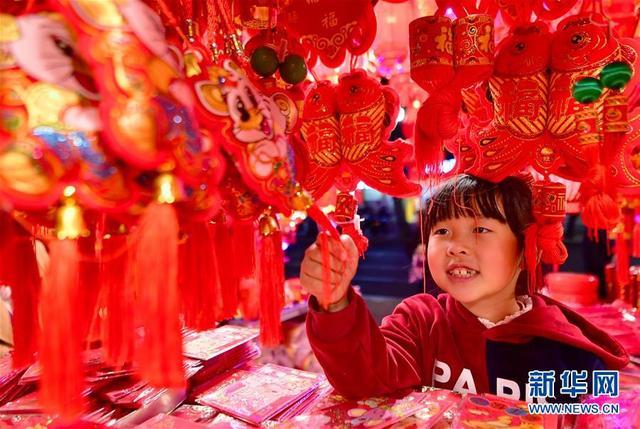 1月13日,一名小朋友在挑选挂饰。 春节临近,不少市民来到福州市鼓西路“春联一条街”选购春联、“福”字等节日饰品。 新华社记者 魏培全 摄