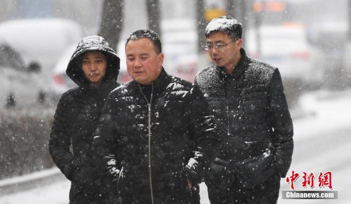 资料图:兰州迎来降雪天气。当日是二十四节气中最后一个节气“大寒”。图为市民雪中出行。中新社记者 杨艳敏 摄