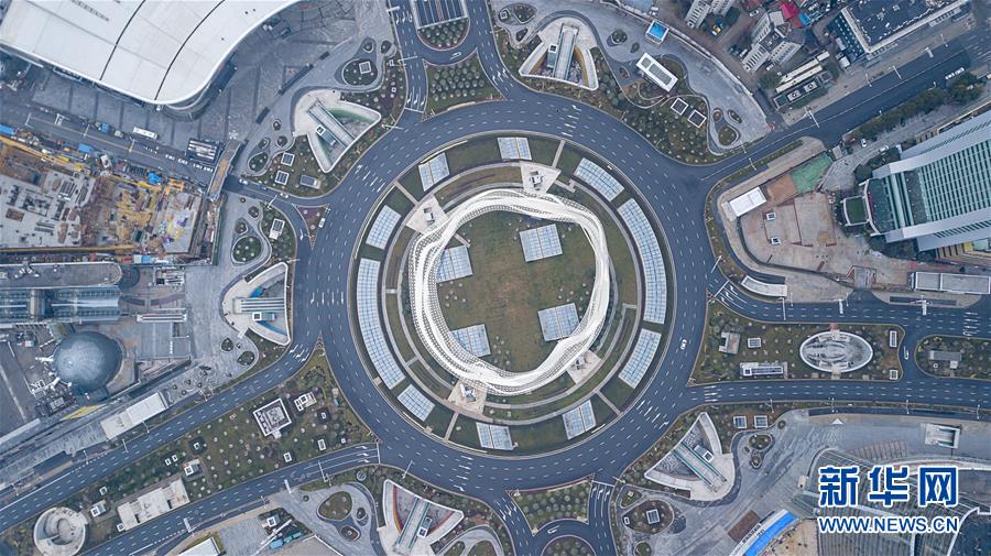 1月26日拍摄的武汉光谷广场综合体(无人机照片)。 武汉是新型冠状病毒感染的肺炎疫情防控核心区。 春节期间,人们减少外出。 新华社记者 熊琦 摄