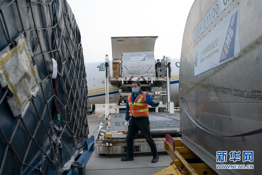 1月29日,工作人员将援助的物资卸下。新华社记者 熊琦