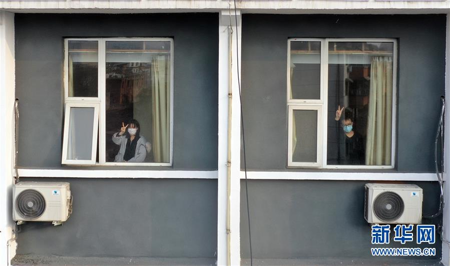 2月4日,在河南信阳,湖北籍隔离人员为自己加油打气(无人机照片)。新型冠状病毒感染的肺炎疫情发生后,在河南省信阳市,目前有9名湖北籍人员被集中安置在浉河区湖东商务宾馆进行医学观察与隔离。隔离期间,入驻宾馆的工作人员承担起了“外卖员”“心理医生”等角色,为隔离人员提供了细心周到的服务。 热干面既是湖北武汉的名小吃,也是河南信阳的知名小吃。2月5日,隔离人员吃到了工作人员特意为他们制作的“过早”热干面。“味道蛮好的,和武汉的热干面差不多”,来自武汉的隔离人员盛彤说,“非常感谢工作人员对我们的关心与帮助。”一碗热腾腾的热干面,在特殊时期传递了暖暖的温情。
