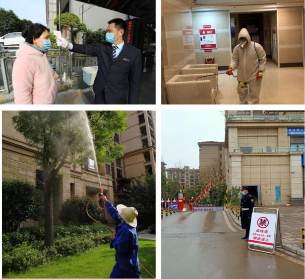 在疫情防控期间,为进一步保障小区安全,金科服务从人员管控、园区消杀、科普宣传三个方面,在各大小区内,对大厅、楼梯、电梯、地下车库、园区各公共设施等区域进行全面消毒,预防病毒传播,尤其对重点高频部位进行了反复消杀,确保园区安全无死角。并粘贴温馨提示,设置废弃口罩回收点,给业主提供一个安全、安心的卫生环境。并拟定“双人双岗进出必测体温”“为异地返渝业主每日上门测量体温”“公区重点部位每天三次消杀”等十五项疫情防控措施,用严格的管理增加着小区的安全系数。
