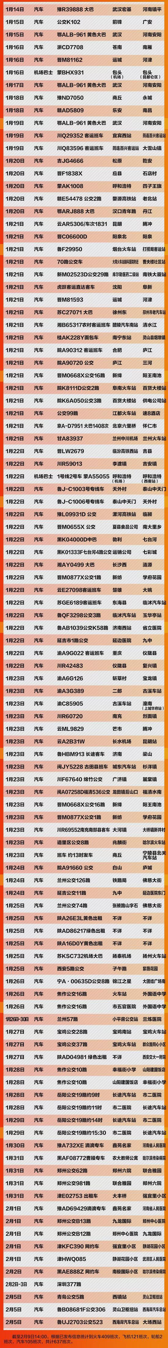 这637个车次、轮船、航班发现患者 急寻同行人!