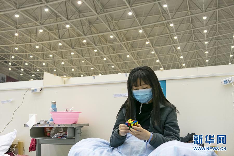 2月10日,在武汉客厅方舱医院,一名患者在拼魔方。 武汉方舱医院从2月5日收治首批患者以来,运行平稳有序,患者在医护人员的精心照顾下调养身体,等待痊愈。 新华社记者 熊琦 摄