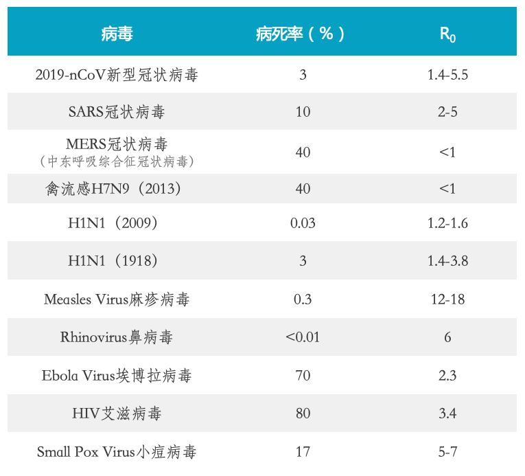 ▲图1:多种病毒的病死率及R0值比较