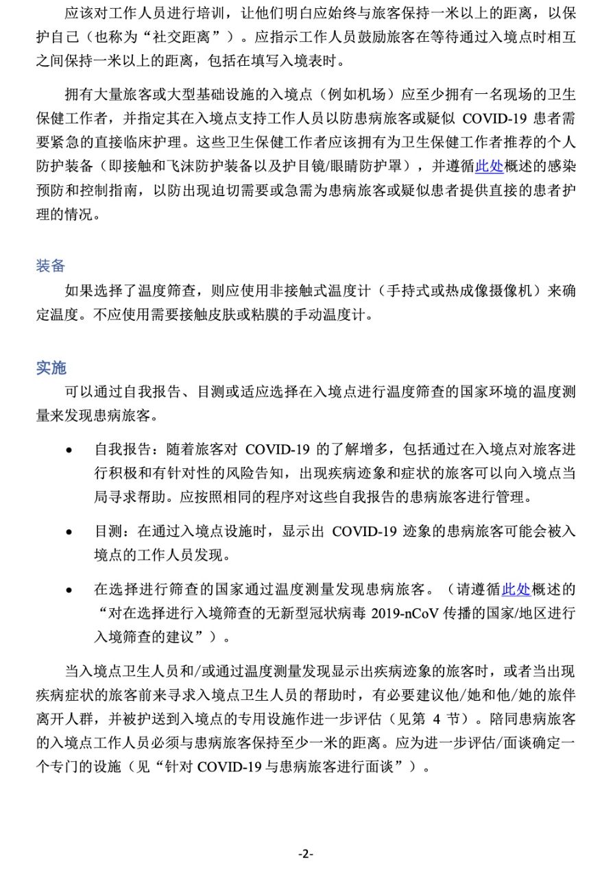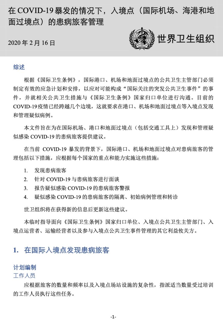 中国网讯 世卫组织近期发布了关于2019冠状病毒病患者入境口管理的临时技术指南,目的是就在国际机场、港口和地面过境点发现和管理疑似感染2019冠状病毒病的旅行者提供咨询意见。