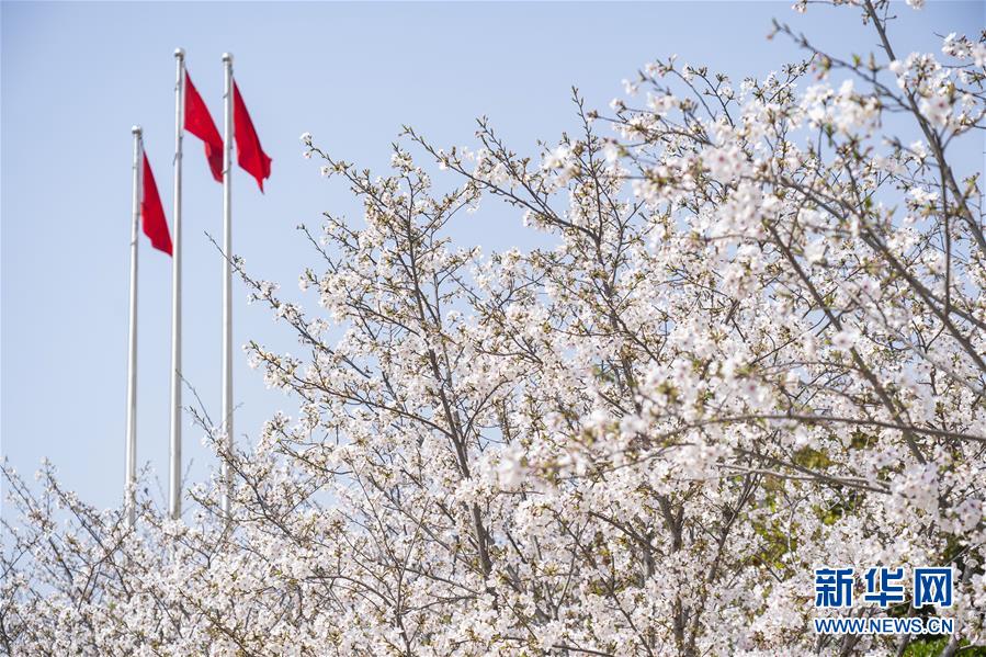 3月19日,在武汉市武昌区被网友称为“武汉最美停车场”的湖北日报停车场,一名工作人员在拍摄樱花。 进入3月中旬,武汉气温渐升,武汉市各处樱花次第开放。 新华社记者 才扬 摄