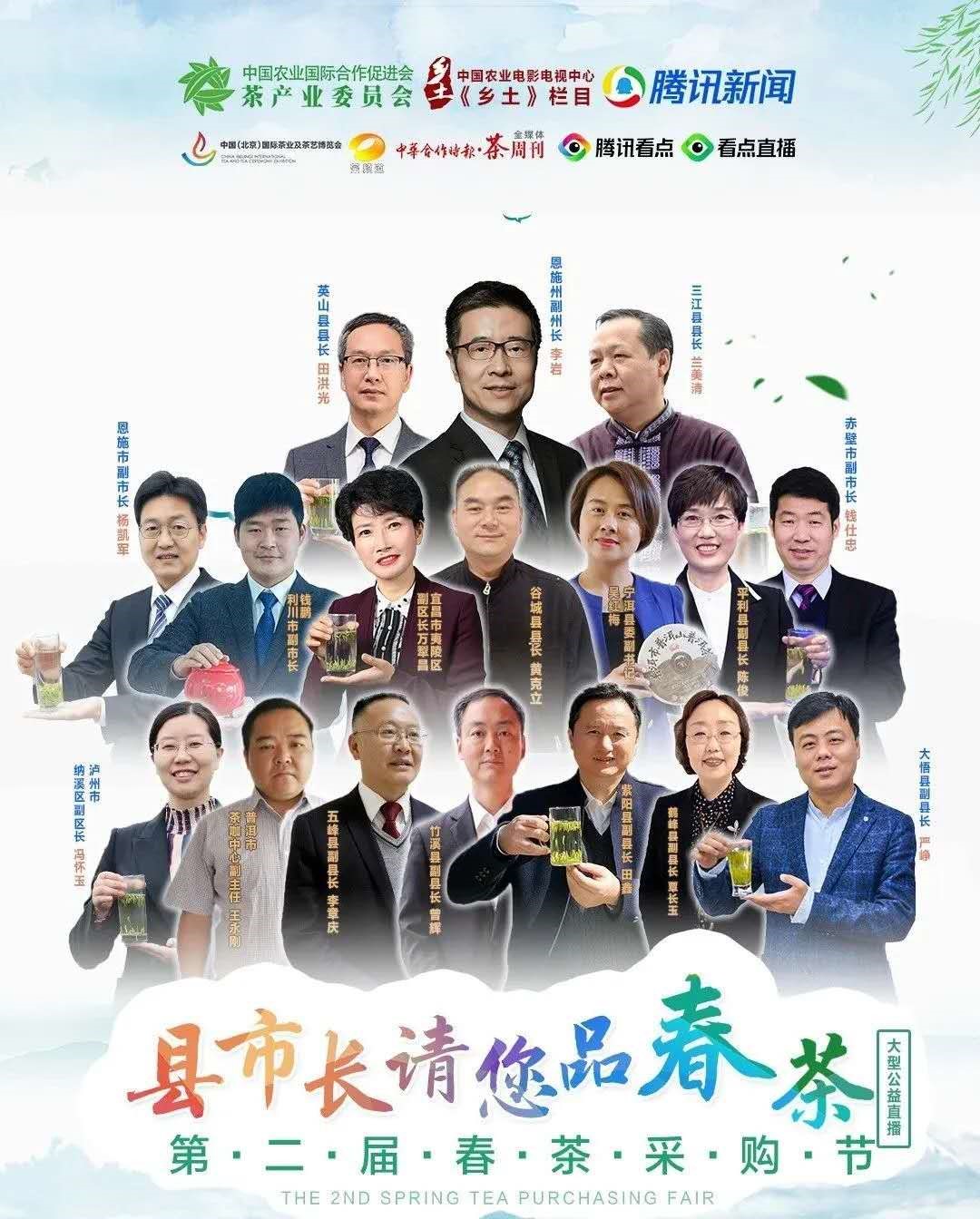 为了破解当前全国春茶销售困局,落实农业农村部办公厅的紧急通知,4月5-6日,由中国农业国际合作促进会茶产业委员会、中国农业电影电视中心《乡土》栏目、腾讯新闻、中国(北京)国际茶业及茶艺博览会组委会、湖南卫视茶频道、中华合作时报·茶周刊全媒体主办的“县市长请您品春茶”——第二届春茶采购节公益直播活动在腾讯新闻、看点直播进行。