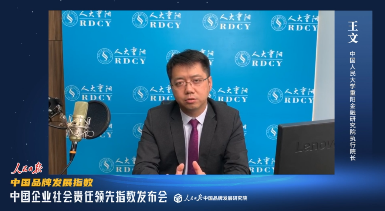 5月12日,由人民日报中国品牌发展研究院主办,人民日报客户端、腾讯视频、新浪财经、北京时间、百度百家号、浙直播和快手同步直播的人民日报“中国品牌发展指数”之“中国企业社会责任领先指数”线上发布会隆重举行。其间,人民日报“中国品牌发展指数”之“中国企业社会责任领先指数”正式发布。发布会上,专家学者与企业家代表通过现场访谈、视频连线的方式齐聚一堂,共同探讨企业社会责任的新内涵、新特征、新评价。