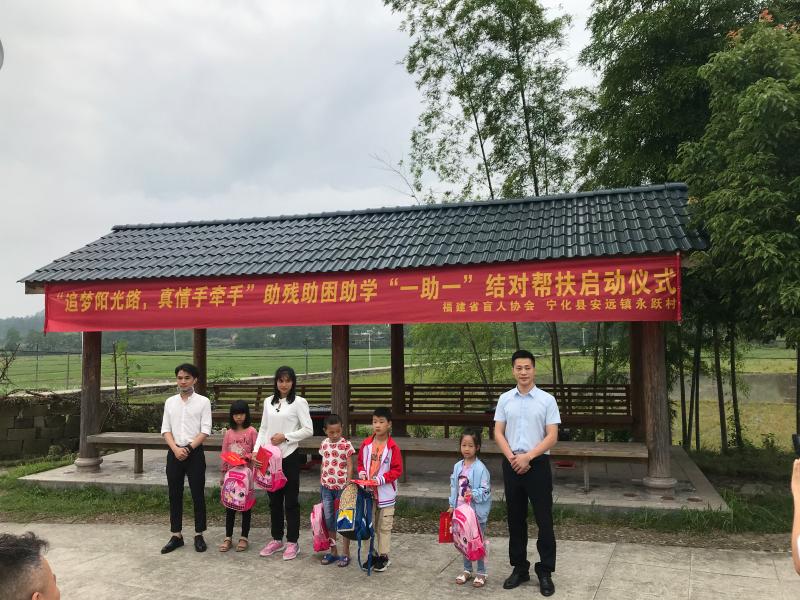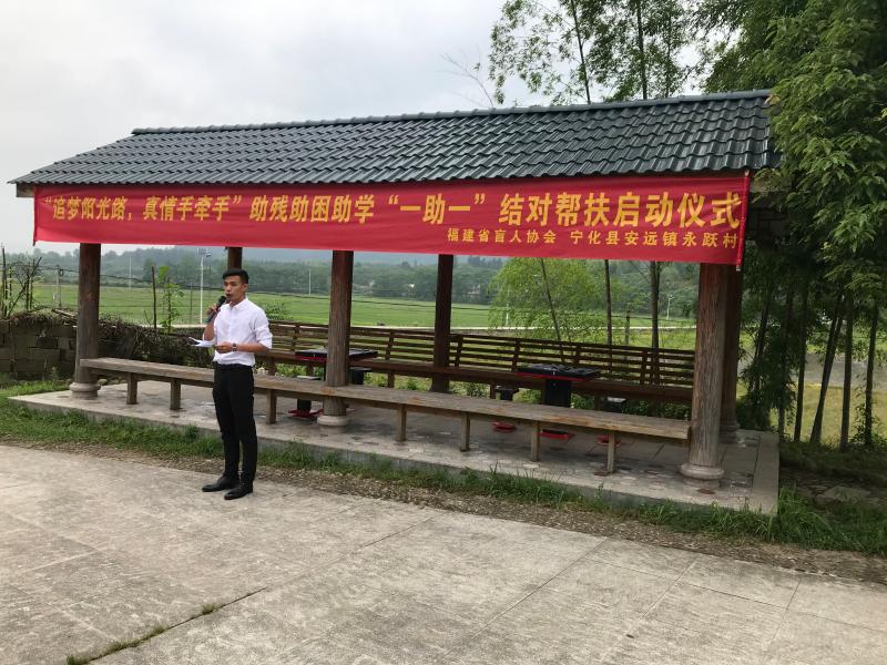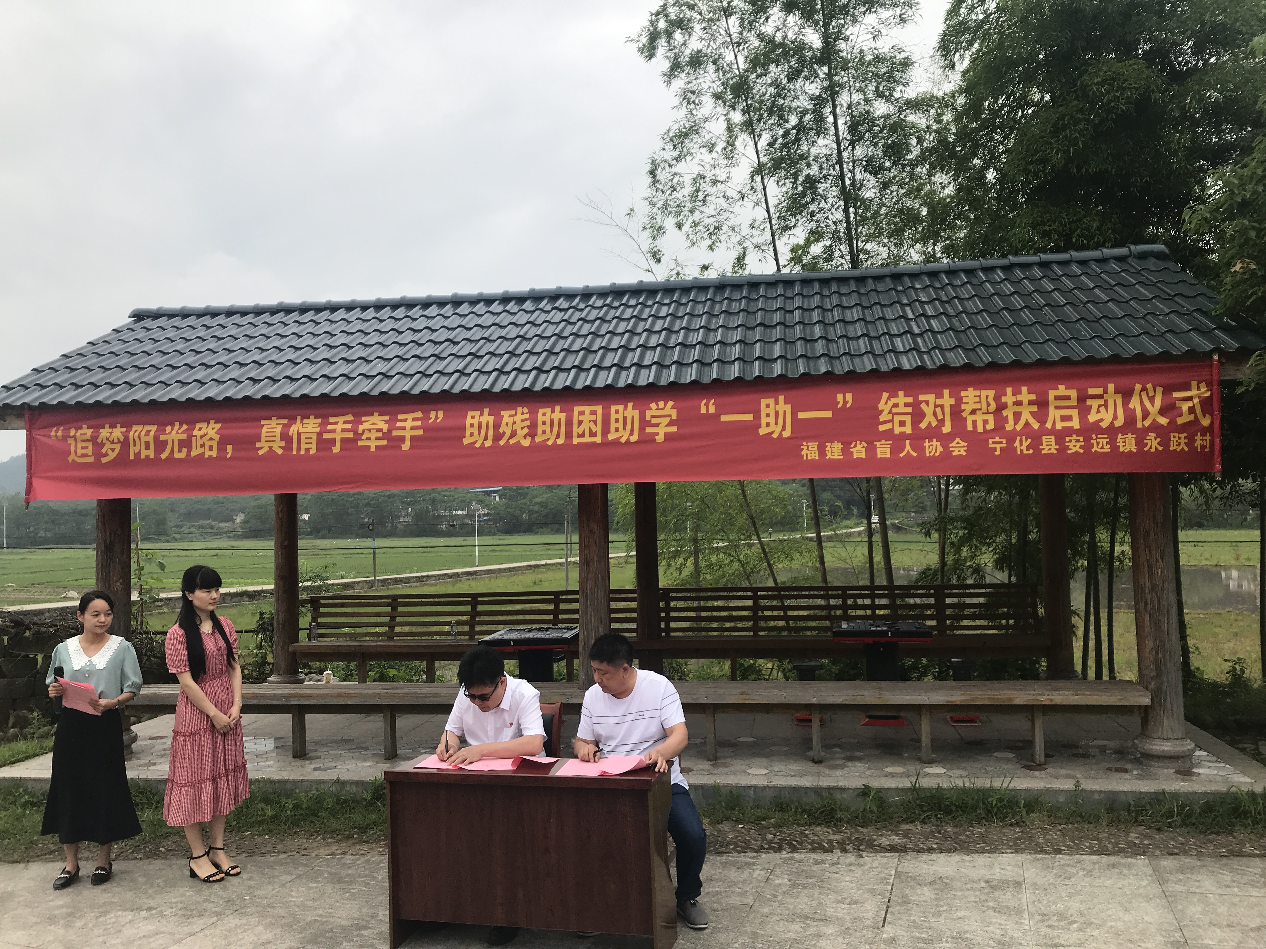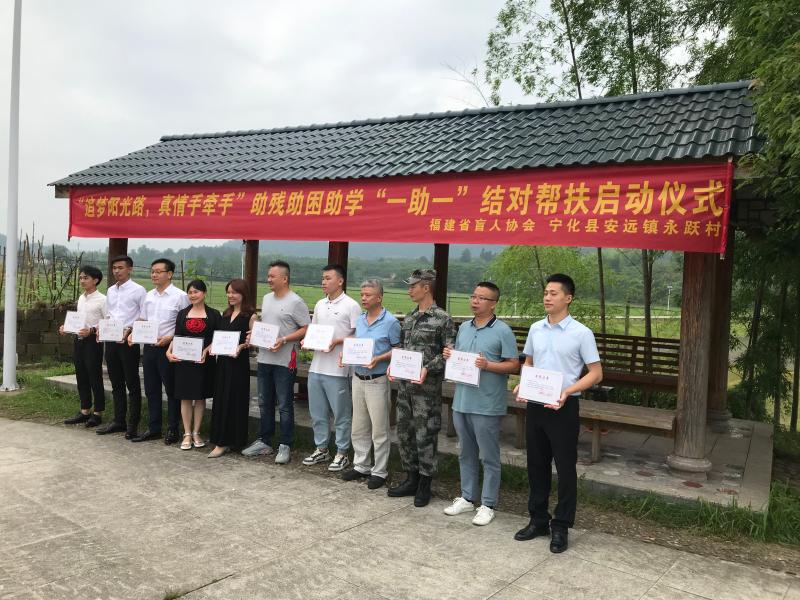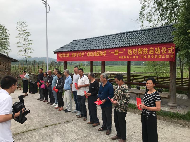 5月28日,以“追梦阳光路 真情手牵手”为主题的“一助一”结对帮扶启动仪式在宁化县安远镇永跃村举行。由福建省盲人协会组织的爱心企业和爱心人士与永跃村20户困难家庭“一助一”结对,开展长期的助残助学助困帮扶活动。