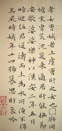 书法作品,临曹娥碑。碑文上记载了浙江百姓们在五月初五纪念涛神伍子胥的情景。也许没人想得到,对悲剧人物伍子胥的纪念活动又引出了另一个关于端午节的悲剧传说。
