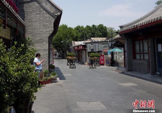 6月18日,位于北京西城区的南锣鼓巷旅游景点难现往日人满为患,游客数量明显减少,部分商家已经关门停业。 中新网记者 李霈韵 摄