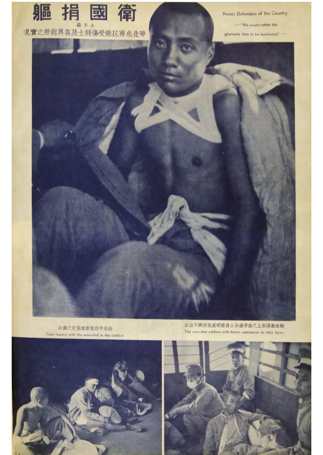 他在长辛店火车站碰到了金振中营长,金营长是最早跟日本人肉搏的军人,方大曾就拍下了金正中满身绷带躺在床上的照片。面对镜头,金振中强忍伤痛挤出一丝微笑,他表示因为他是军人,不能把痛苦留在照片里边。