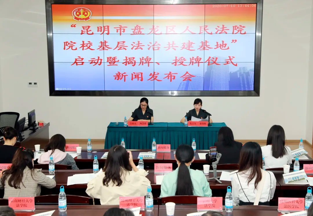 按下启动键:7月10日下午,举行昆明市盘龙区人民法院院校基层法治共建基地启动暨揭牌、授牌仪式。