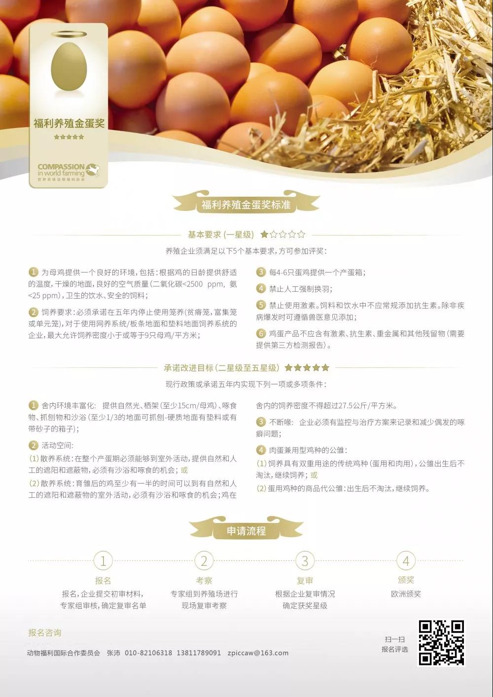 福利养殖金蛋奖:舍内生产系统不低于20000只母鸡,散养生产系统不低于5000只母鸡;