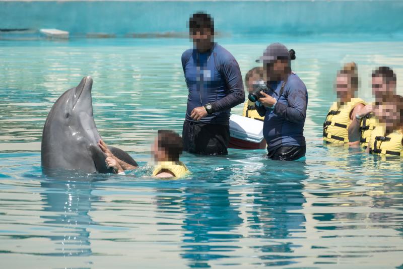 研究显示,全球范围内超过3,000只海豚被圈养用于营利性娱乐表演,墨西哥的29个海豚娱乐场所中圈养了约240只海豚。在这些景点中,圈养海豚被用作活体冲浪板,被尖叫的人群和摇滚演唱会般巨大的噪音所包围。它们不得不忍受与游客自拍,满足游客在社交媒体上打卡分享的需求。