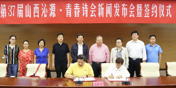 发布会结束后,沁源县政府副县长李建萍与《诗刊》事业发展部副主任蓝野签定了合作协议。第37届青春诗会将于2021年夏季在山西沁源举行,届时中共沁源县委、县人民政府将与《诗刊》社携手共创一场青春澎湃、不同凡响的诗意盛会。