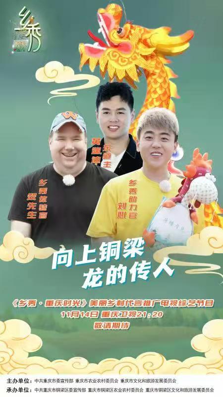 向上铜梁,龙的传人。11月14日晚21:20锁定重庆卫视,巡礼山城最美乡村,看《乡秀·重庆时光》如何用独特的视角为我们呈现重庆铜梁新农村、新农人的优美画卷。