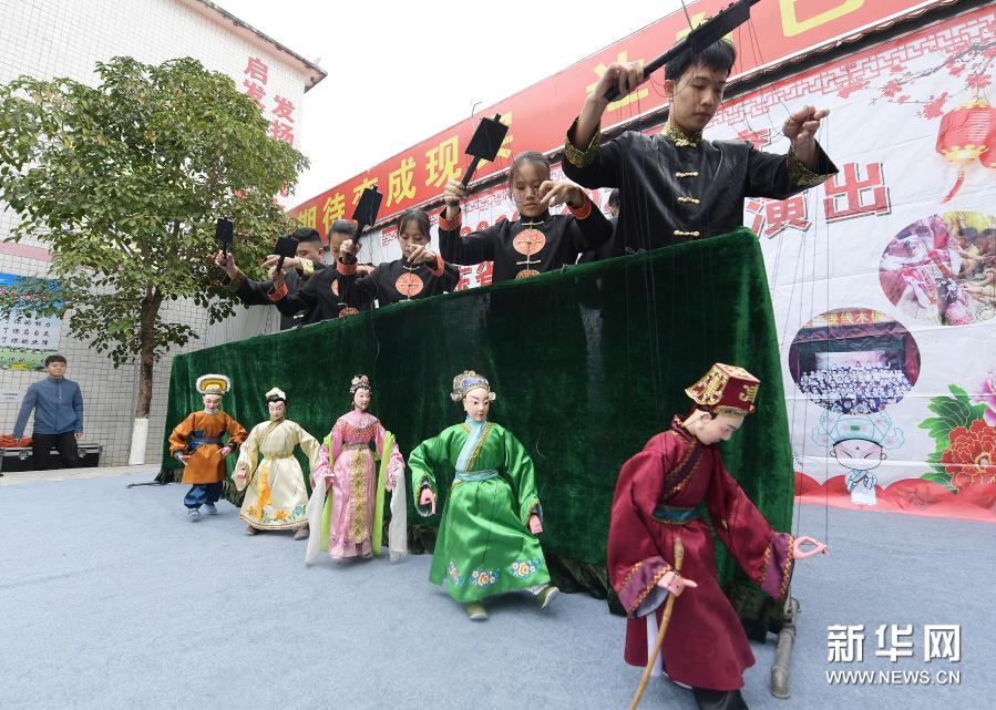 演员在舞台上表演木偶戏(11月23日摄)。新华社记者 李贺 摄