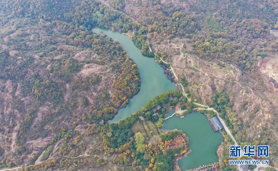 这是11月28日拍摄的白马涧生态园景色(无人机照片)。位于江苏苏州高新区枫桥街道辖区内的白马涧生态园,是一片原生态“绿肺”。冬日里的白马涧生态园五彩斑斓,景色迷人。新华社记者 季春鹏 摄