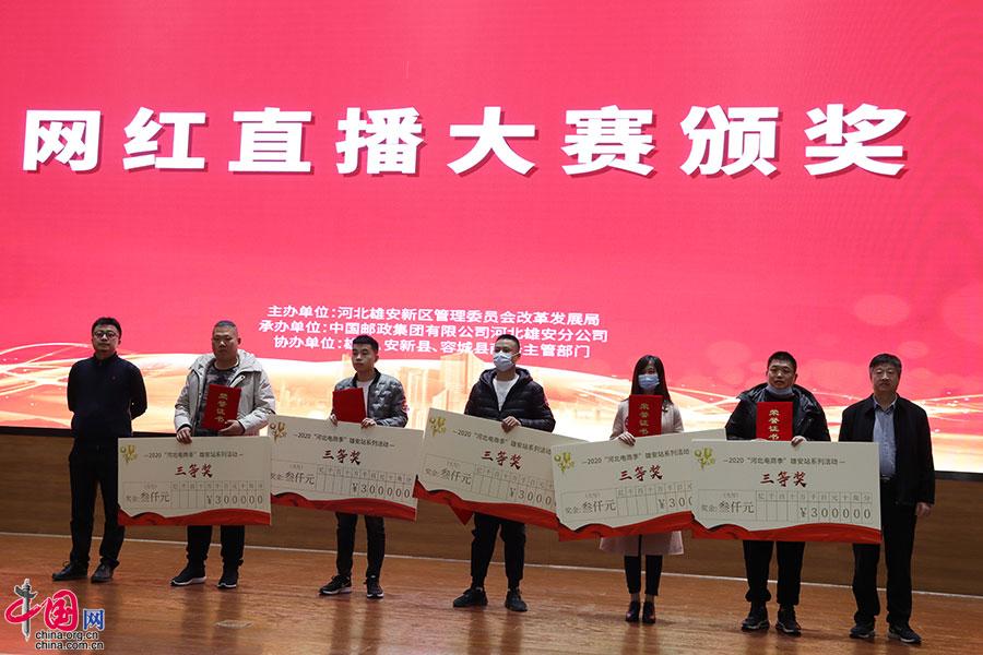 中国网讯(姚宇琛)12月4日,2020“河北电商季”雄安新区站电商大赛颁奖典礼在雄安新区成功举行。该活动由河北雄安新区管理委员会改革发展局主办,中国邮政集团有限公司河北雄安分公司承办,雄县、容城县、安新县商务主管部门协办,旨在提高雄安新区自有电商品牌知名度,优化电商产业链供应链,培育专业直播网络人才,助力雄安新区消费提升和传统产业转型升级。