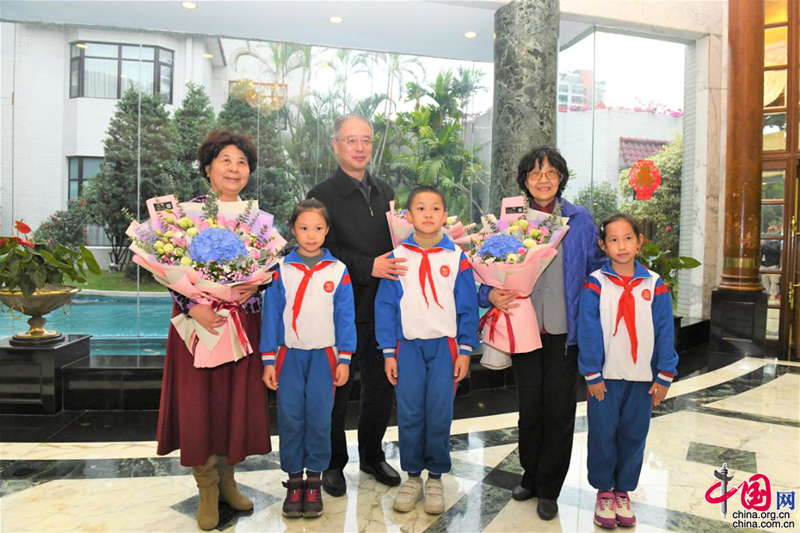 “黄奶奶,听了您的报告,我长大了也想投身航天事业!‘嫦娥五号’今天凌晨回家啦。二十年后,如果我登上了‘嫦娥30号’去月球,一定给您带‘土’特产回来!”话音落地,现场一片欢腾,同学们笑成一片。