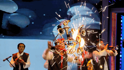 主持人小毕哥和大脚婶伴着他们的歌声,