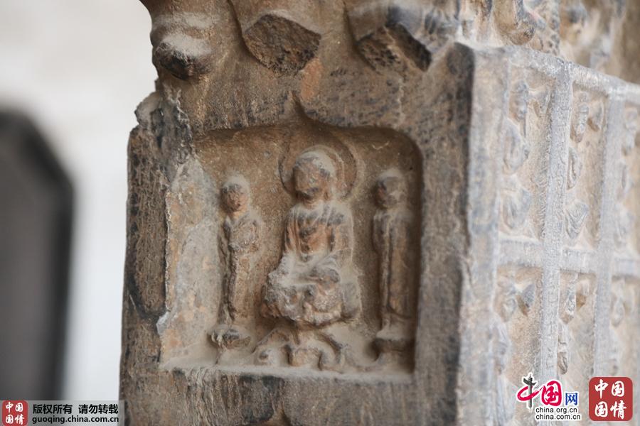 唐代先天二年大象邑之碑左侧小龛雕一佛、二菩萨
