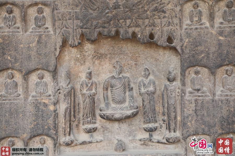 唐垂拱二年智珉造像碑佛说法像龛,内雕一佛、二弟子、二菩萨