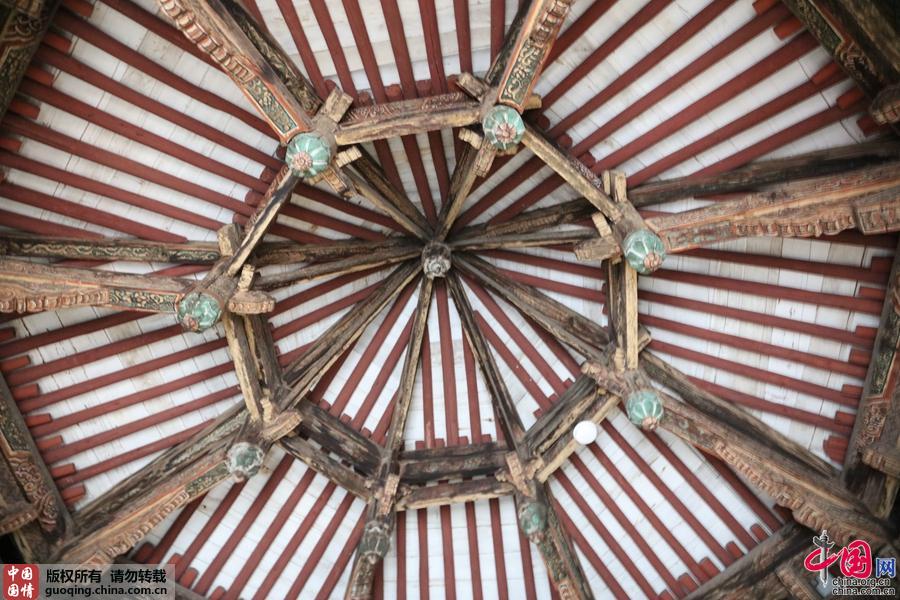 观音堂雕花琉璃脊,檐下斗拱,出檐深邃