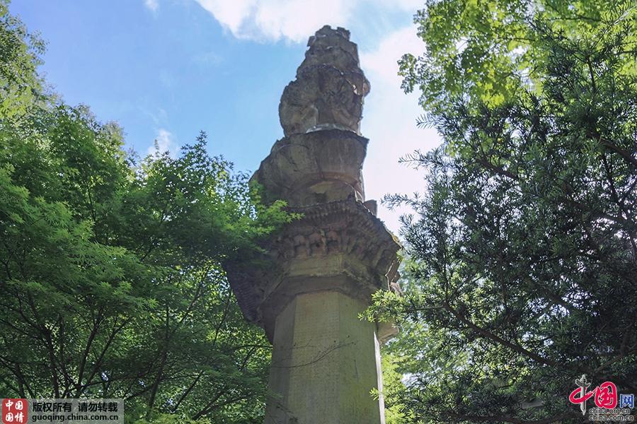 灵隐寺两经幢 建于北宋开宝二年 因经幢顶构件残缺,现存东经幢高8.05米,西经幢高11.89米