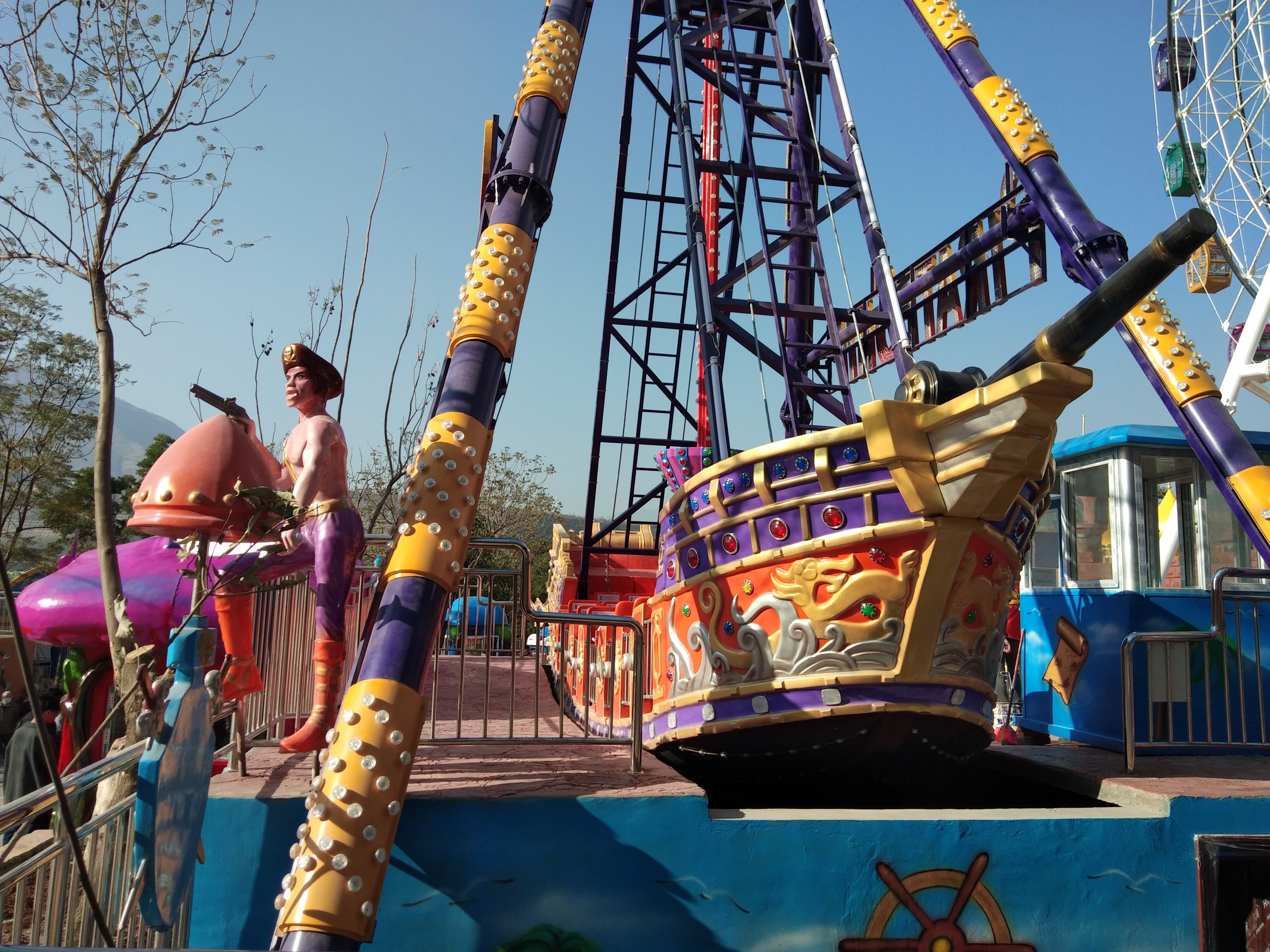 名为“东川欢乐世界”游乐项目位于东川人民公园,项目总投资1.2亿元,分为陆地和水上两部分,如今投入运营的是陆上游乐项目,已完成投资8千多万元,共开放营运摩天轮、激流勇进、海盗船、家庭过山车、豪华碰碰车、人造沙滩与冲浪、旋转木马、矿洞幽灵等14个游乐项目,让游客既能感受惊险奇幻的刺激,也能享受休闲自在的体验。