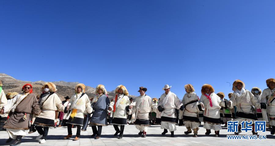 2月12日,拉萨市当雄县牧民跳起锅庄舞。