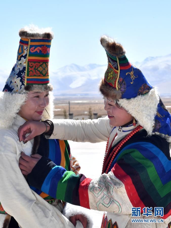 2月12日拍摄的着盛装的拉萨市当雄县藏族牧民。新华社记者 觉果 摄