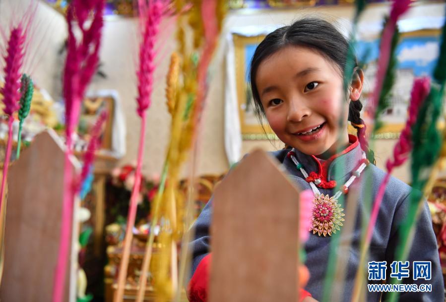 2月12日,在西藏拉萨,一名身着藏装的藏族小姑娘在吃切玛。新华社记者 晋美多吉 摄