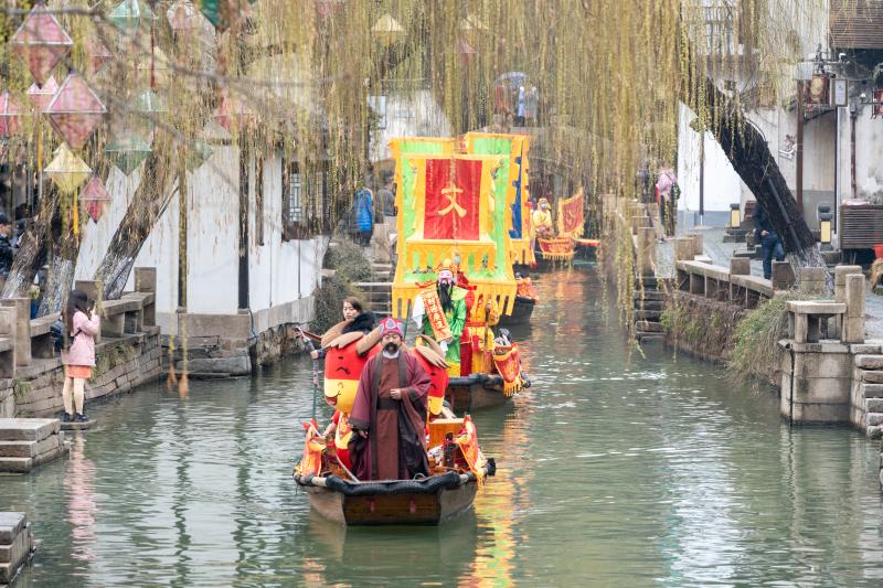 逛古镇,邂逅财神水上巡游,五日财源五日求,一年心愿一时酬。