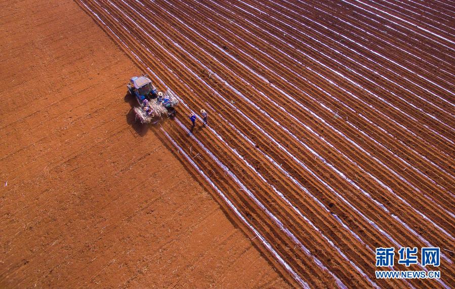 这是1月28日在广东湛江拍摄的耕作画面(无人机照片)。新华社发