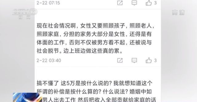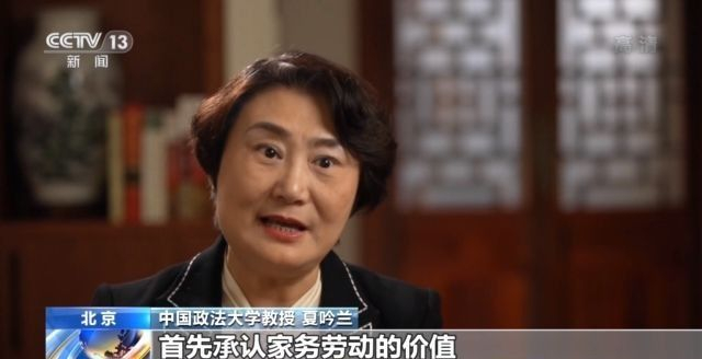 中国政法大学教授 夏吟兰:我们现在的这个法律首先承认家务劳动的价值,不管你是全职太太完全在家从事家务劳动,还是你是职业妇女既从事家务劳动也从事社会工作。那么只要你确实是从事家务劳动较多,你就可以要求对你的家务劳动在离婚的时候予以补偿 。