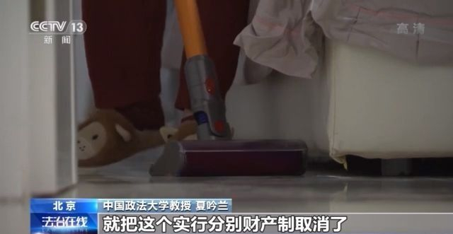 中国政法大学教授 夏吟兰:因为在我们国家完全实行分别财产制的,我们调研到的仅占3%到5%。而这个3%到5%可能因为他已经实行分别财产制了,通过行政程序协议离婚,用不着到法院了,所以我们在调查的时候在法院诉讼离婚过程当中就没有符合条件的,所以自然就不能用家务劳动补偿制度了。这次我们在规定的时候就把实行分别财产制取消了,也就是说只要离婚的时候,一方从事抚养子女、抚养老人、教育子女、协助另一方工作等等,这样的一些家务劳动他就有权要求家务劳动补偿。