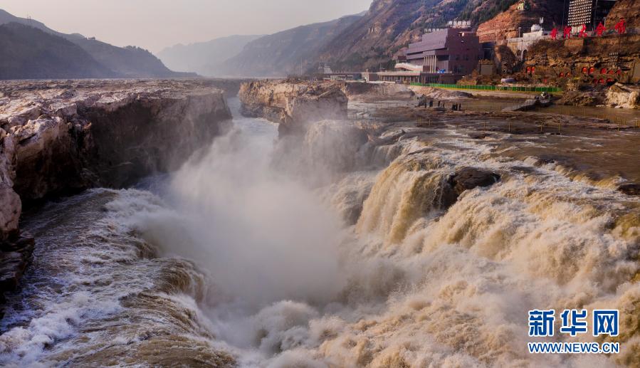 2月23日拍摄的重现磅礴之势的壶口瀑布(无人机照片)。新华社记者陶明摄