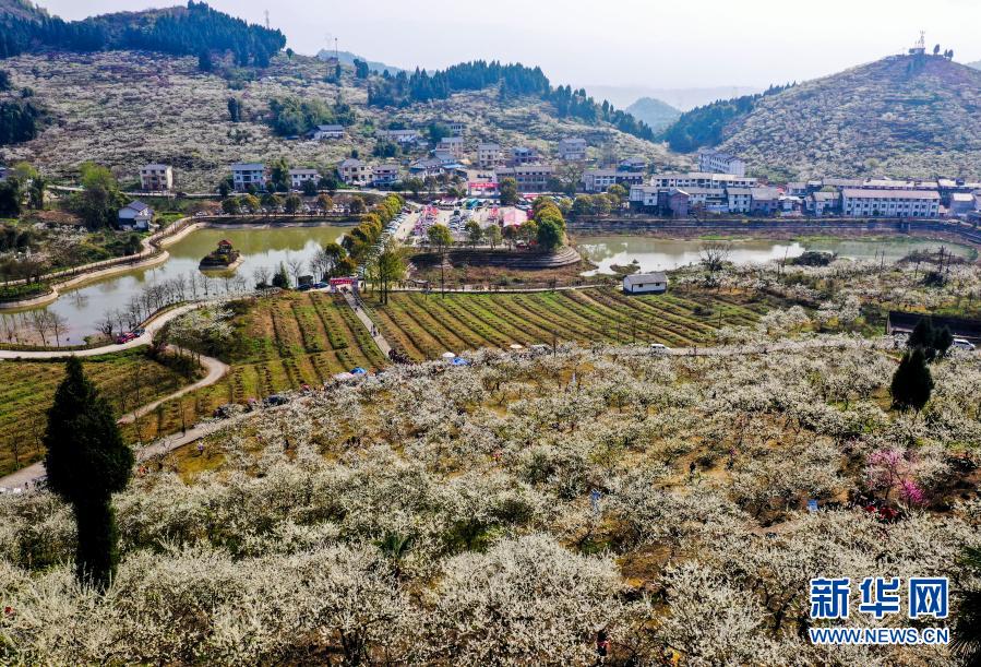 早春时节,重庆市渝北区统景镇万亩李花争相开放,在当地李花生态旅游的核心区印盒村,盛开的万千李花犹如白雪。据介绍,近年来统景镇充分利用印盒村、龙安村、裕华村种植的李树,打造以春看花、夏采果融合发展的乡村生态旅游业,使当地村民实现人均年增收近万元。