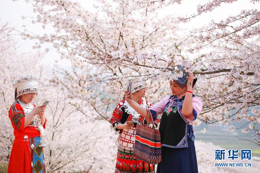 贵州省安顺市西秀区黄腊乡樱花园总面积近万亩,园内樱花栽种于2011年,今年已接待贵阳、安顺等地游客3万余人。当地以“合作社+商户+务工”形式带动周边乡村经济发展,在樱花园内提供数十个秩序维护、环境卫生、应急管理等就业岗位,有力促进乡村振兴。